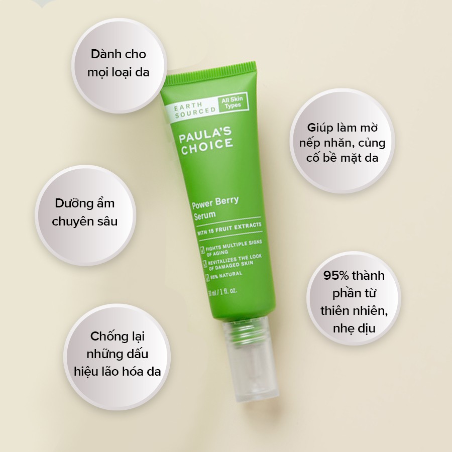 The Paulas Choice Power Berry Serum is in the Earth Sourced range meaning it has 95 natural origin ingredients there is also a cleanser toner and moisturizer in this line. Hair Brown Other Other. Anti-Ageing Sensitive skin Dull skin. Il contient 15 extraits de fruits dont 13 extraits de baies précieusement sélectionnées qui se complètent et agissent en synergie pour obtenir une peau resplendissante et en pleine forme. LEarth Sourced Power Berry Serum est un puissant mélange différent des autres sérums de Paulas Choice. Blueberry Goji berry Acai berry View all. Chi tiết sản phẩm.