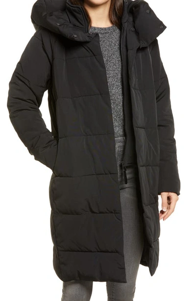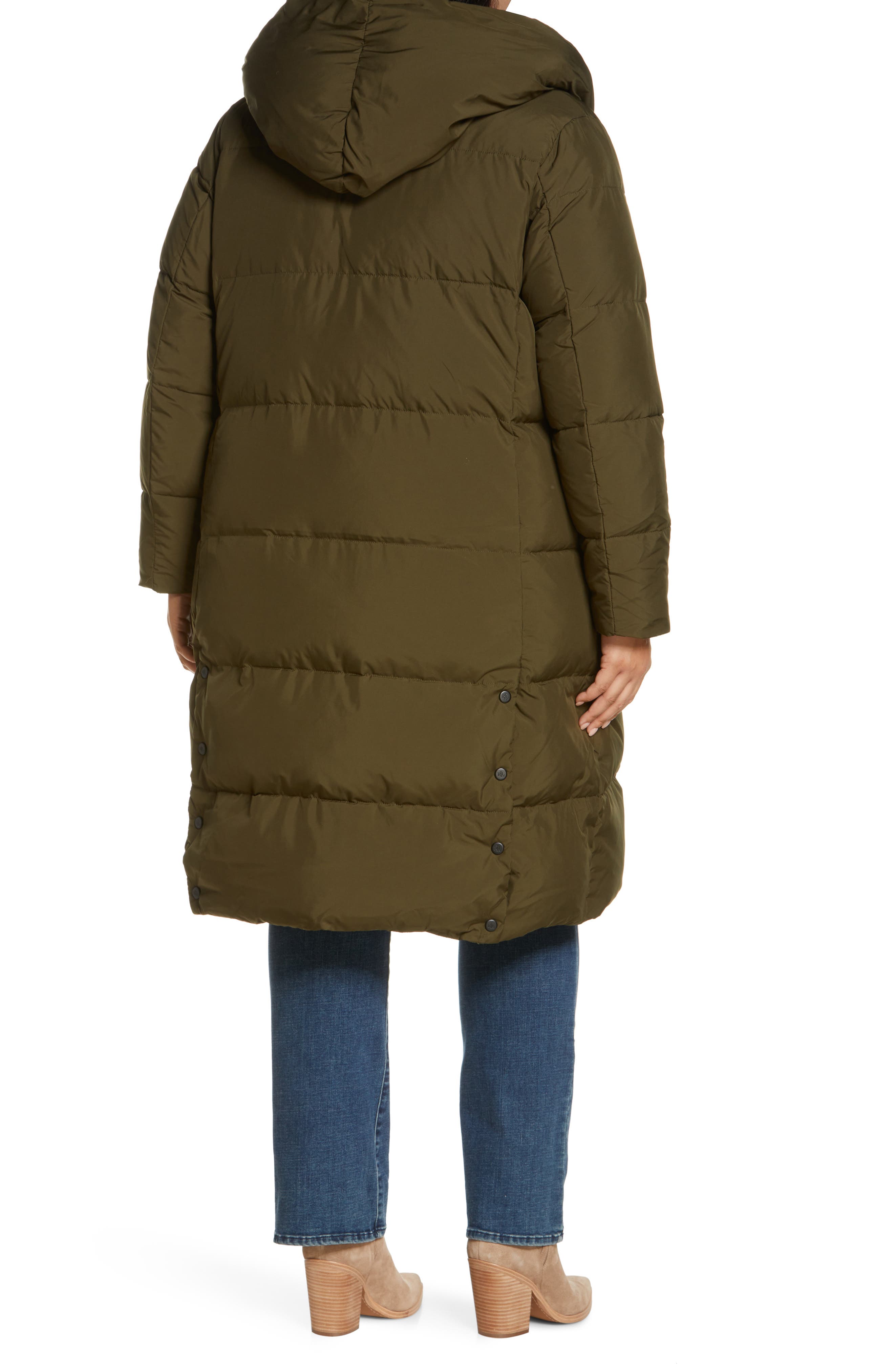 Very useful for on the go because it is easily compactable. The length was perfect on her and the waist was comfortable yet still flattering on her figure. DKNY revamps this quilted puffer coat with a seriously chic and cozy pillow collar and a waist-defining drawstring.